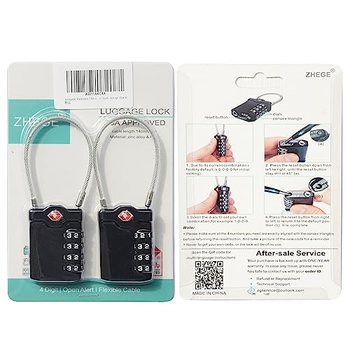 TSA Luggage Locks, 4-Digit Cable Padlock (2 Pack, Black)
